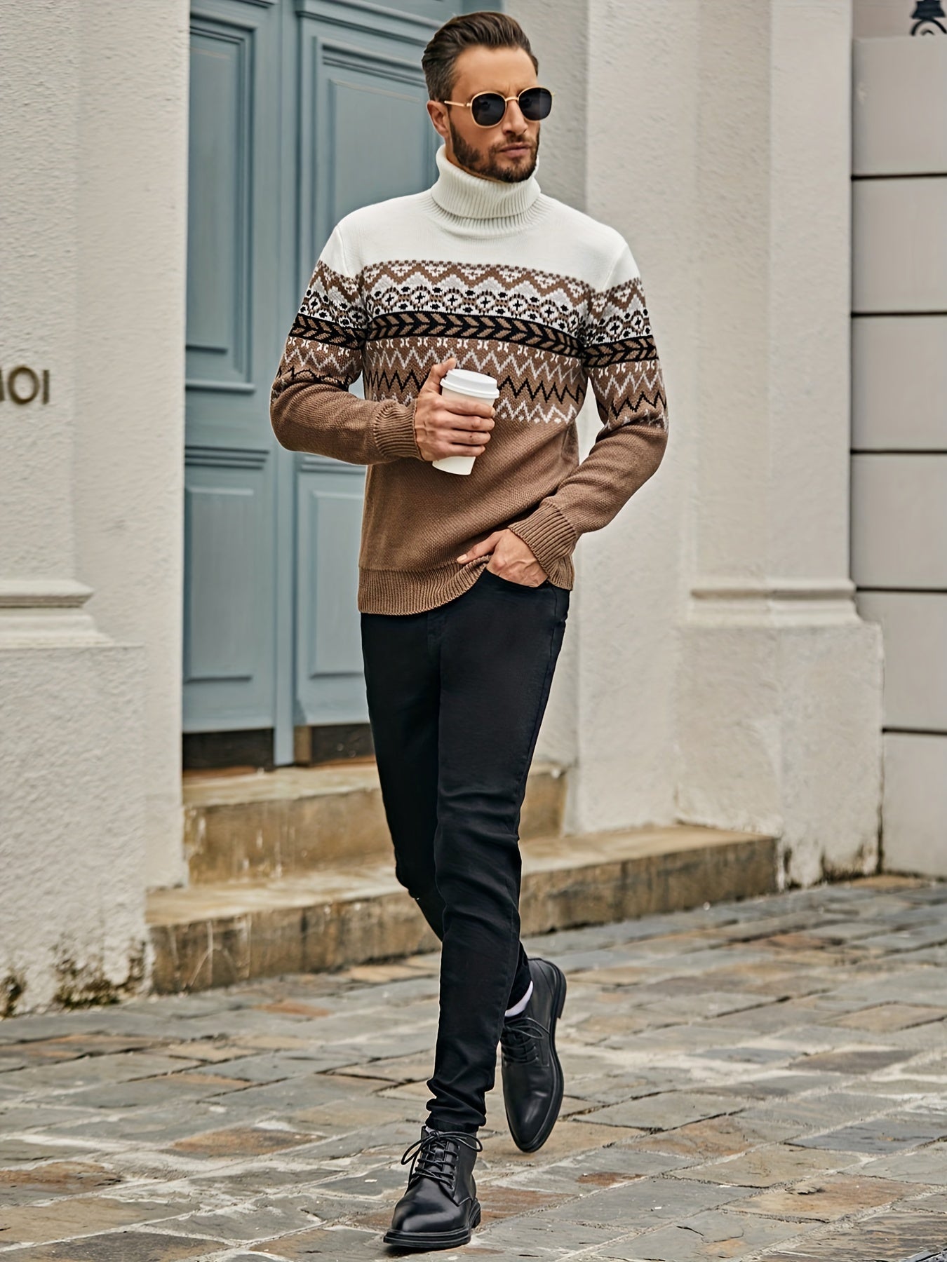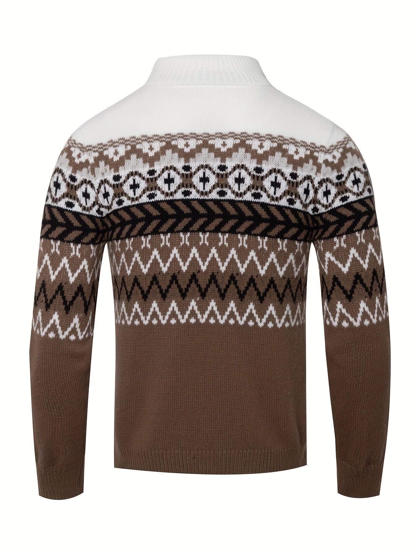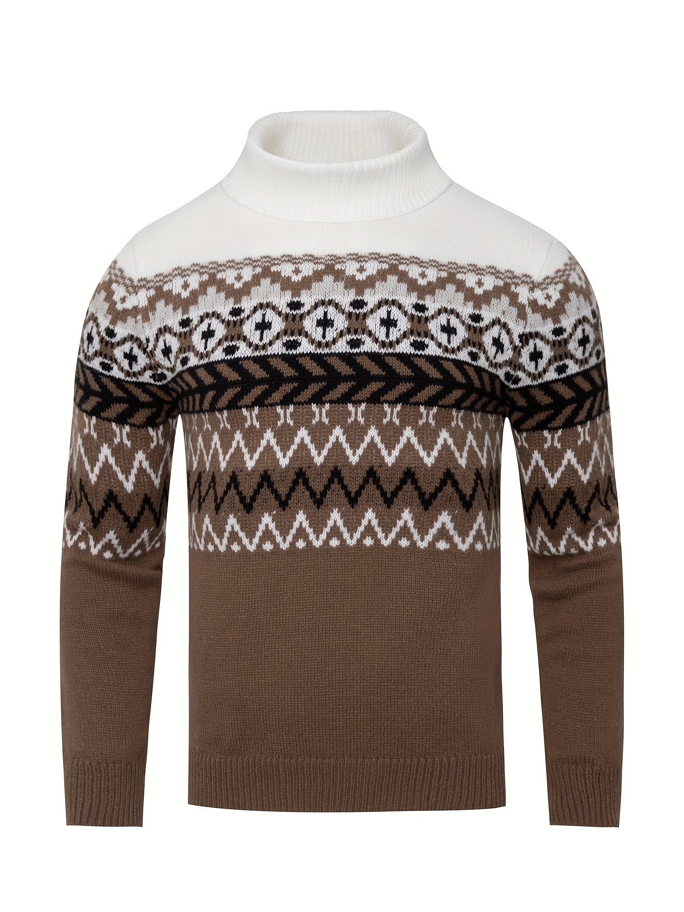 Inspiré du style scandinave, ce pull d'hiver offre à la fois chaleur et style. Le motif nordique et le col roulé confortable donnent un look sophistiqué pendant les mois les plus froids.